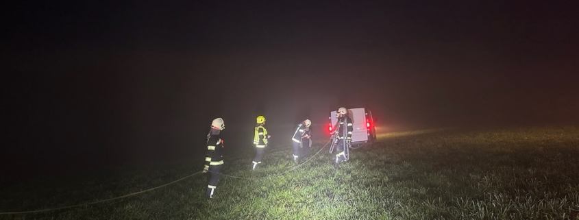 Am Dürnberg ist eine Zustellerin mit ihrem PKW von der Straße abgekommen und in einem angrenzenden Feld zum Stehen gekommen. Das Fahrzeug wurde mittels Seilwinde zurück auf die Straße gezogen und konnte die Fahrt nach den abgeschlossenen Arbeiten fortsetzen.